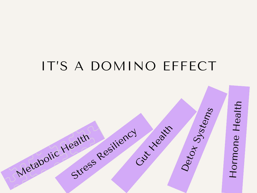 So if you've been trying to fix gut or hormone issues without much success, it could be because your metabolic health is suffering. And without solid metabolic health? It's like trying to keep the last domino standing when the first one's already toppled over—it just doesn't work.